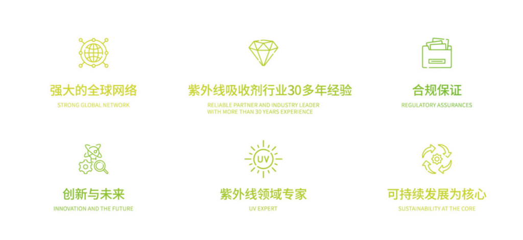 凭借近30年的UV行业经验和强大的研发团队,我们在抗UV领域自研及生产上拥有数百项专利技术,确保了我们能够为客户提供最高品质的防晒剂。